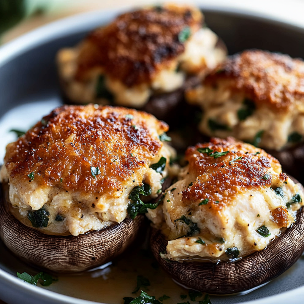 Chicken stuffed mushrooms are a delightful treat that brings together tender mushroom caps filled with a creamy, savory chicken mixture. Perfect for appetizers or as a comforting main dish, these flavorful bites are enriched with cream cheese and fresh herbs, topped with a crispy layer of Parmesan cheese. Easy to prepare and packed with flavor, they are sure to impress at gatherings or make for a satisfying weeknight dinner.