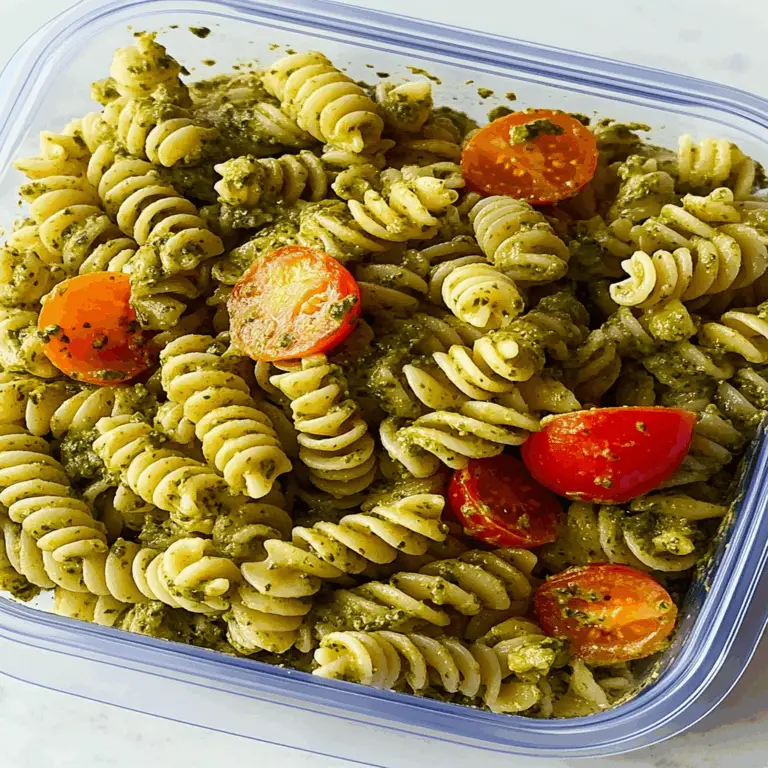 Pasta Salad with Pesto for Lunch Boxes is a delightful fusion of flavors and textures that brings a touch of gourmet to your midday meal. This vibrant dish features al dente rotini pasta tossed in fresh basil pesto, complemented by sweet cherry tomatoes and crisp cucumbers. Perfect for meal prep, this versatile recipe allows for endless customization, making it an ideal choice for busy weekdays or picnics. Enjoy the colorful goodness at home or on the go!