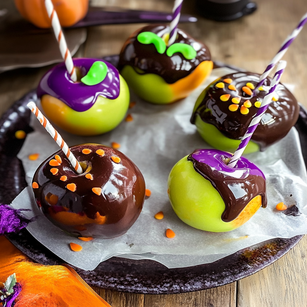 Pastel Halloween Candy Apples are a delightful twist on the traditional candy apple. They feature fresh apples coated in a sweet, pastel-colored candy shell, reminiscent of Halloween’s playful spirit. The vibrant colors make them visually appealing and perfect for festive gatherings. These treats not only satisfy your sweet tooth but also add a fun decorative element to your Halloween dessert table. You can customize the colors and toppings to match your theme, making them a versatile choice for any celebration.