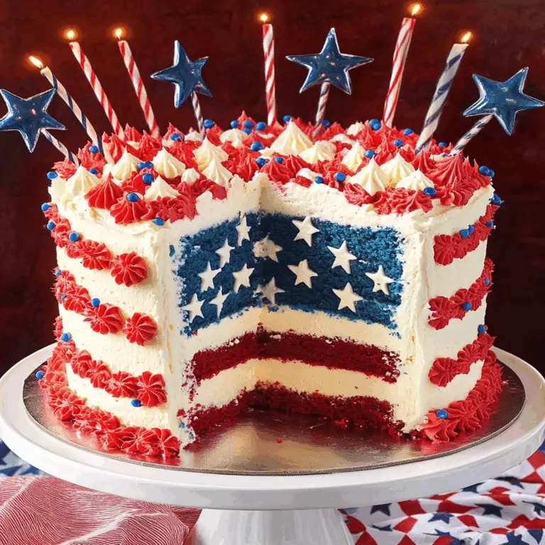 Picture this: it’s a sunny afternoon, friends and family gather around, laughter fills the air, and your masterpiece takes center stage. This cake is more than just dessert; it’s an emotional connection to childhood memories of fireworks and barbecues. With every slice, you’ll savor not only the flavors but also the joy of celebration—perfect for making those Independence Day moments even sweeter.
