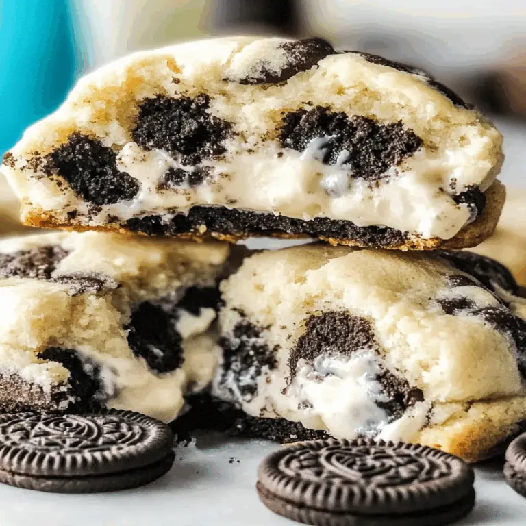 Oreo Cheesecake Cookies combine the rich flavors of cheesecake with the beloved Oreo cookie. These treats feature a soft, creamy center that mimics cheesecake, surrounded by crushed Oreo pieces for added texture. The result is a delicious dessert that satisfies both cheesecake lovers and Oreo fans alike. They are perfect for sharing at gatherings or enjoying as a personal treat.