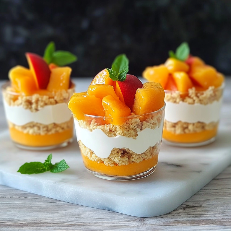 No-Bake Peach Recipes Dessert Cups are delightful treats that require no baking. They typically feature layers of creamy fillings, fresh peaches, and a crunchy base. These cups are perfect for warm weather when you want a refreshing dessert without turning on the oven. Greek yogurt parfaits You can customize them with your favorite ingredients, making them versatile and easy to prepare. Their simplicity and deliciousness make them a popular choice for gatherings or family dinners.