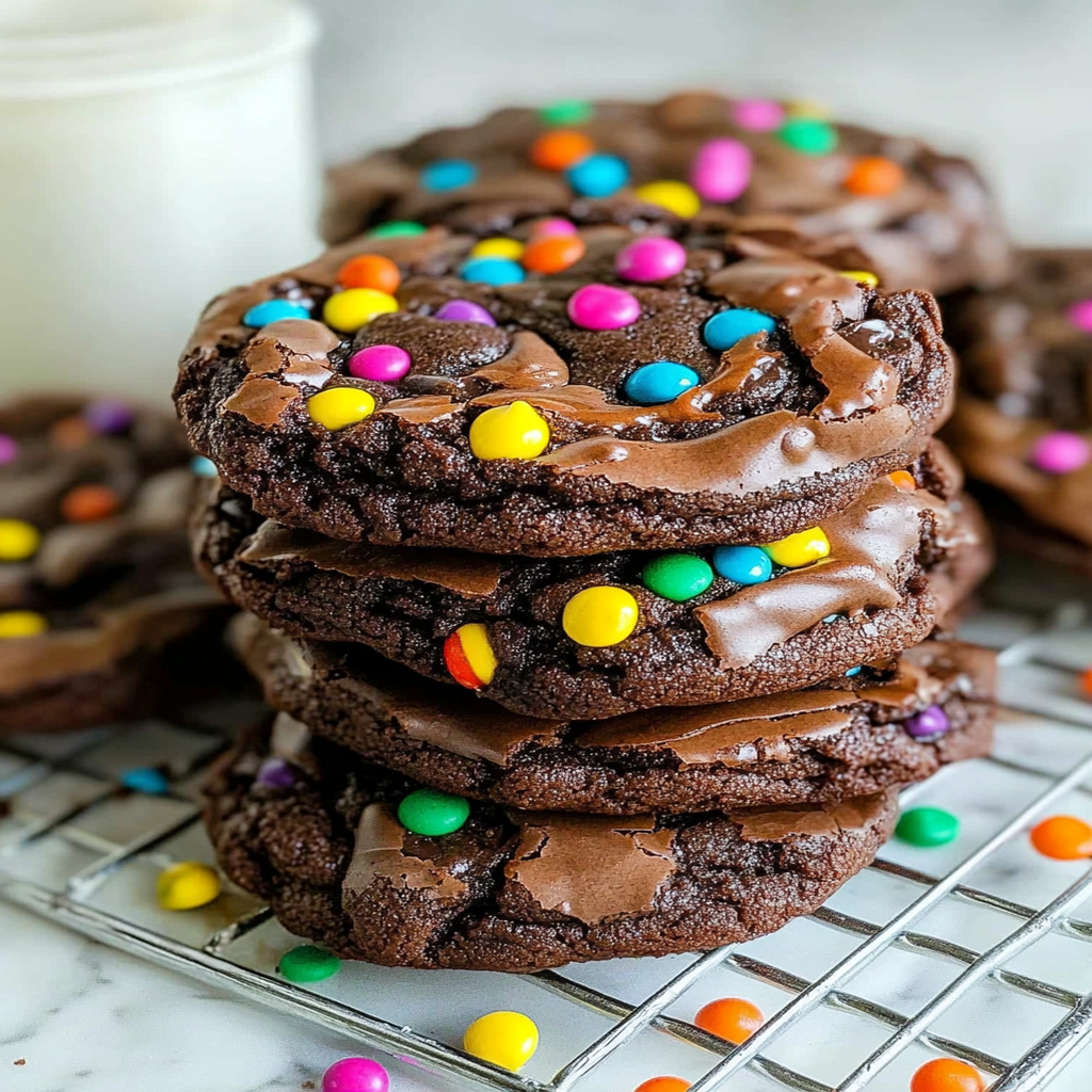 Cosmic Brownie Cookies are a delectable treat that combines the rich, fudgy goodness of brownies with a chewy cookie texture. Each bite is enhanced with semi-sweet chocolate chips and colorful candy-coated toppings, making them the perfect dessert for any occasion. Whether you’re hosting a party or indulging on a cozy night in, these cookies are sure to delight both kids and adults alike!