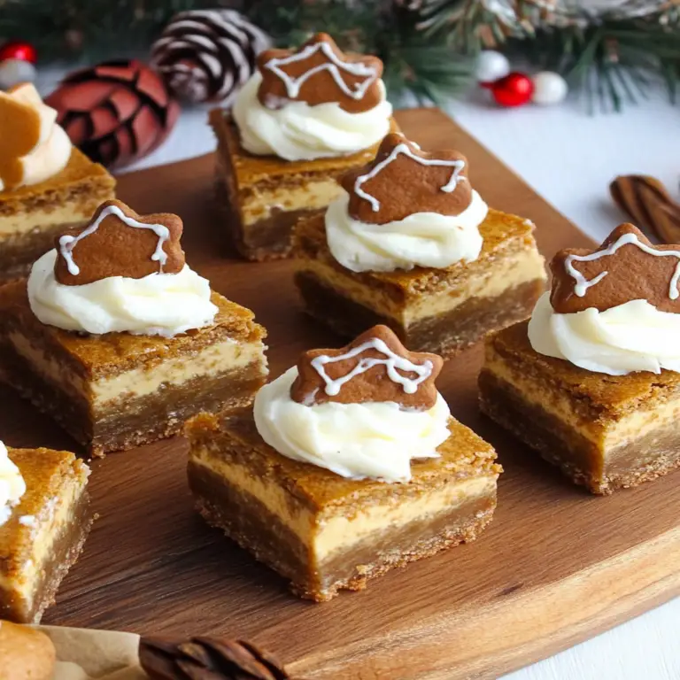 Gingerbread House Swirl Cheesecake Bars are a festive treat that beautifully combines the spicy warmth of gingerbread with creamy cheesecake. These bars feature a buttery graham cracker crust layered with a rich filling, elegantly swirled for a stunning presentation. Perfect for holiday gatherings or cozy nights at home, each bite delivers a delightful mix of flavors that will have everyone asking for the recipe. Easy to prepare and irresistibly delicious, they are the ultimate seasonal dessert.