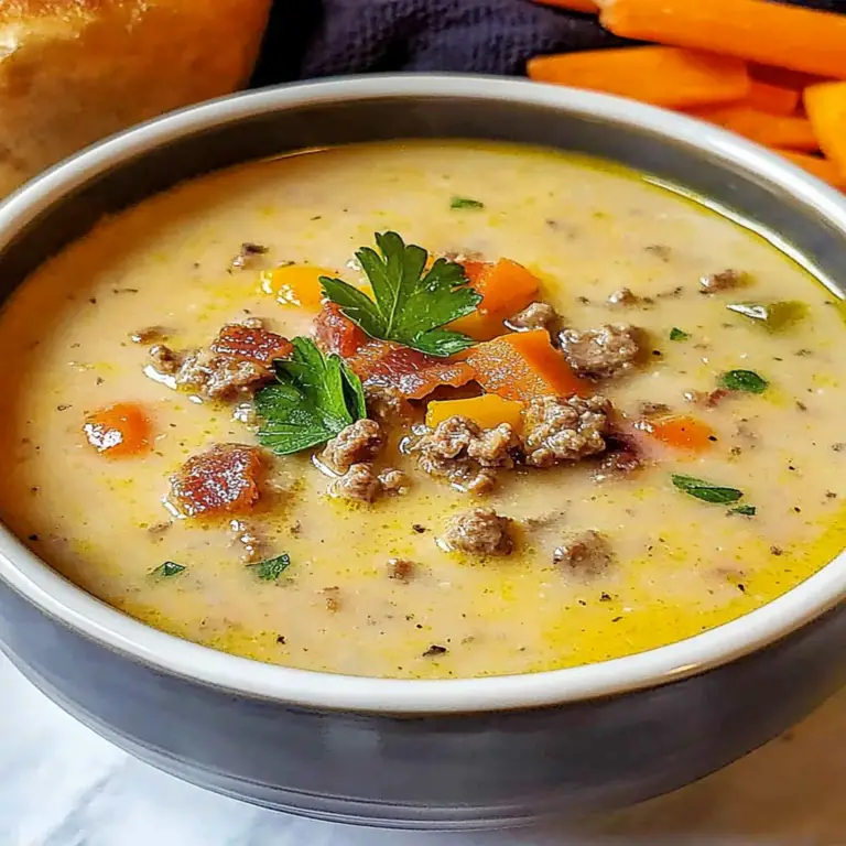Keto Bacon Cheeseburger Soup is a culinary hug in a bowl. Imagine thick, creamy goodness loaded with crispy bacon, savory beef, and zesty cheese all mingling together just waiting to warm your heart and belly. The aroma wafting from the pot is enough to make anyone weak in the knees, while each spoonful delivers a delightful symphony of flavors that will have you shouting “YUM!” faster than you can say “cheeseburger.” For more inspiration, check out this cheeseburger soup recipe recipe.