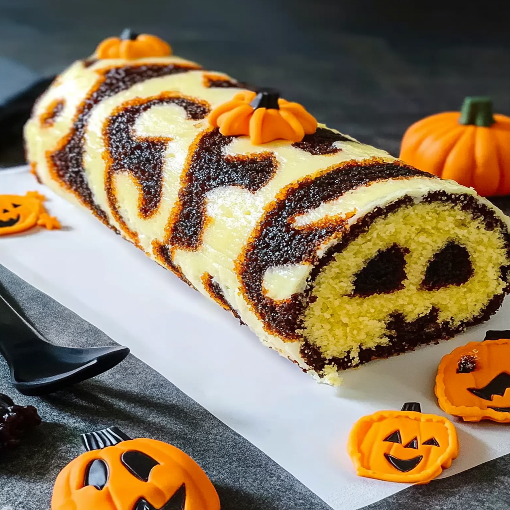Pastel Halloween Cake Roll is a delightful dessert that combines the whimsical elements of Halloween with a soft, pastel-hued sponge cake. Rolled around a rich cream cheese filling, this treat is not only visually stunning but also bursting with flavor. Perfect for autumn gatherings, it’s a fun and festive addition to any celebration, sure to impress both kids and adults alike!