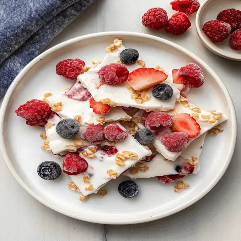 To make Frozen Yogurt Bark with Berries, start by spreading Greek yogurt on a baking sheet lined with parchment paper. Next, sprinkle a variety of berries, such as strawberries, blueberries, and raspberries, over the yogurt. You can also add nuts or granola for extra texture. Freeze the mixture for about two to four hours until solid, then break it into pieces and enjoy your tasty bark! For more inspiration, check out this strawberry cheesecake cookies recipe.