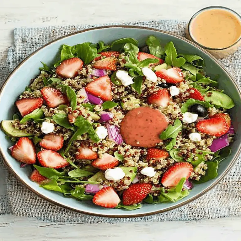 Quinoa Salad with Strawberry Vinaigrette Dressing is a vibrant and refreshing dish that captures the essence of summer. Combining fluffy quinoa, sweet strawberries, and crunchy vegetables, this salad is not only delicious but also packed with nutrients. The homemade strawberry vinaigrette adds a delightful sweetness that enhances the fresh flavors. Perfect for potlucks or light dinners, you’ll love how easy it is to prepare and customize for any occasion.