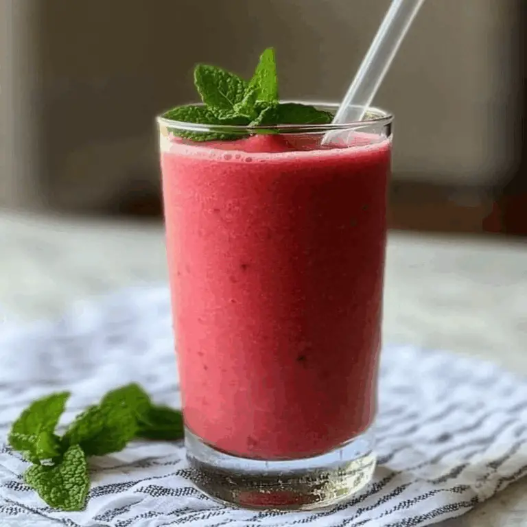 Beat the summer heat with this vibrant and hydrating Watermelon Smoothie with Mint. Combining juicy watermelon, fresh mint, and creamy Greek yogurt, this smoothie offers a deliciously refreshing taste that transports you to sun-soaked days by the pool. With just a few ingredients and simple steps, you can whip up this delightful drink in no time—perfect for breakfast, snacks, or gatherings.