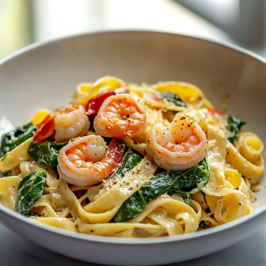 In summary, crafting an exquisite Spinach Shrimp Fettuccine involves selecting fresh ingredients and mastering cooking techniques that enhance flavor profiles without compromising texture. Remember to avoid overcooking pasta while balancing flavors through careful seasoning choices such as garlic and lemon juice—the secret ingredients that elevate this dish’s appeal! Preparing components ahead creates convenience without sacrificing quality—ideal for busy weeknights or entertaining guests alike! Following these tips ensures you’ll create a delightful meal that’s both nutritious and satisfying every time you whip up this delightful recipe.