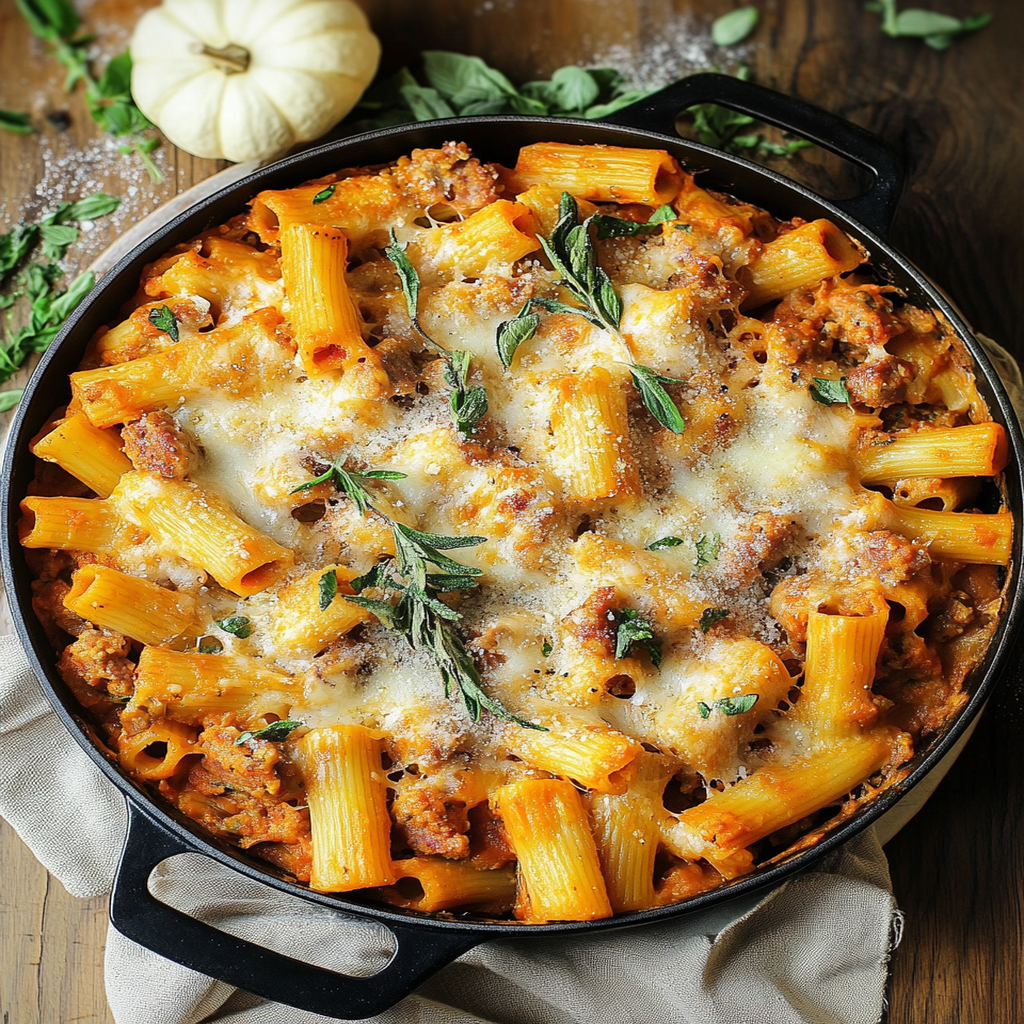 Cozy Fall Comfort Food: Baked Ziti with Sausage & Pumpkin